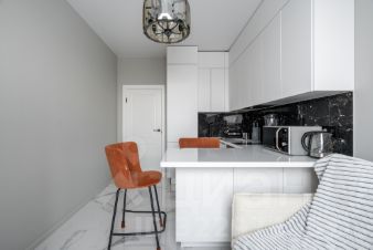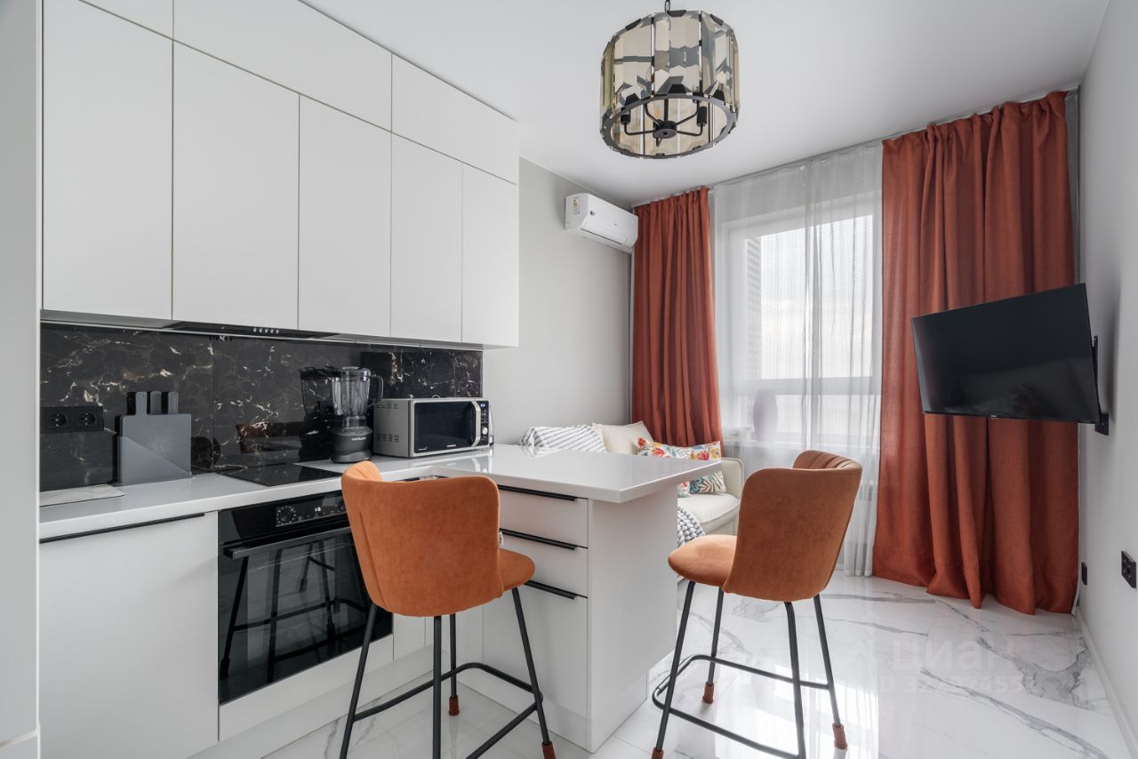 Евродвушка, общей площадью 35 м2 с современным дизайном, высоким уровнем комфорта, с новой мебелью и техникой на 19 этаже 22-этажного дома. Высокие потолки 2.95 м. В ремонте были использованы качественные отделочные материалы: пол- крупноформатный керамогранит и ламинат, стены под покраску. Кухня оборудована встраиваемой техникой (холодильник, посудомоечная машина, духовой шкаф, варочная панель, вытяжка, стиральная машина, кондиционер). В кухне-гостиной: барная стойка, раскладной диван и телевизор, в спальне: кровать 160х200 с подъемным механизмом, прикроватные тумбы, шкаф-купе, телевизор, в коридоре большой шкаф-купе. Санузел оснащен качественной сантехникой, ванная, гигиенический душ, раковина с широкой встроенной тумбой. Всё готово для комфортного проживания!