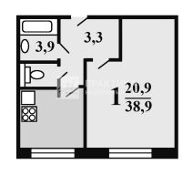 Высота потолков 2,65 м. Жилая площадь составляет 20,9 кв. м, кухня — 8,3 кв. м. Окна выходят на улицу. Санузел раздельный. В доме 2 пассажирских лифта.