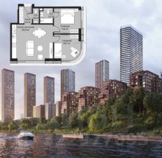 Продается 2-комнатная квартира 54.9 кв.м. с панорамными окнами в жилом комплексе бизнес-класса City Bay на берегу Москвы-реки.