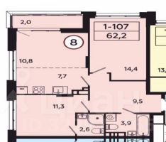 • Общая площадь — 62,2 м² (без учёта лоджии — 60,2 м²)