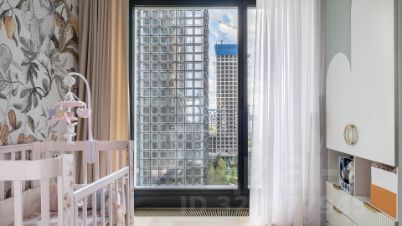 Планировка: кухня-гостиная, мастер-спальня с собственной гардеробной и ванной комнатой, две детские спальни, санузел с душем, холл. Благодаря панорамному остеклению и потолкам высотой 3,1 метра пространство наполнено воздухом и естественным светом. Из окон открывается вид на внутренний парк.