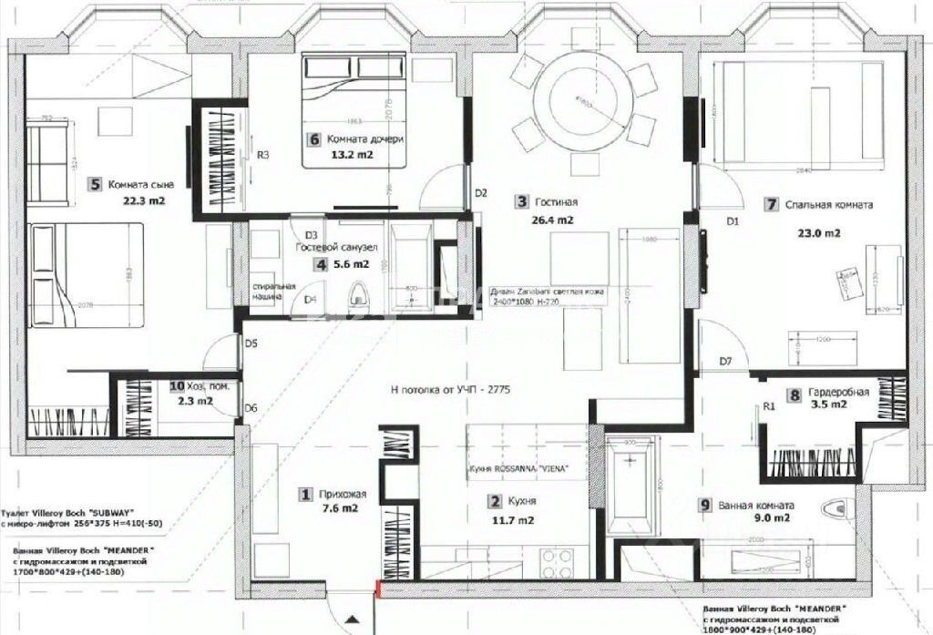Функциональная планировка предусматривает: просторную гостиную-столовую-кухню в едином пространстве, 2 детские спальни и 1 мастер-спальню, 2 санузла, 3 гардеробные комнаты и кладовую. Квартира меблирована и оснащена бытовой техникой для комфортного проживания. Из окон квартиры открывается красивый панорамный вид на город.
