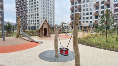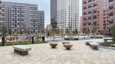 В данном ЖК реализована концепция двор без машины. Закрытый двор, вход во двор только по пропускам. Во дворе предусмотрены игровые и спортивные площадки для детей всех возрастов.