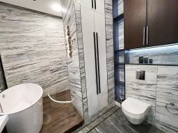 Дизайнерский ремонт выполнен с использованием премиальных материалов и передовых технологий, качественная дорогая мебель из массивов лучших пород дерева. Есть вся необходимая бытовая техника от лучших производителей. Современная ванная комната оборудована сантехникой от мировых брендов.