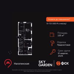 Продаётся 4-к квартира номер 292 общей площадью 105 кв.м. на 43-м этаже 43 этажного здания. Отделка Whitebox. Цена с учётом скидки.