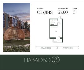 Старт продаж! Продается студия в новом клубном жилом комплексе "Павлово 3" площадью - 27.60 кв. м на 3 этаже, в корпусе 3 в малоэтажном монолитном доме от компании-застройщика.