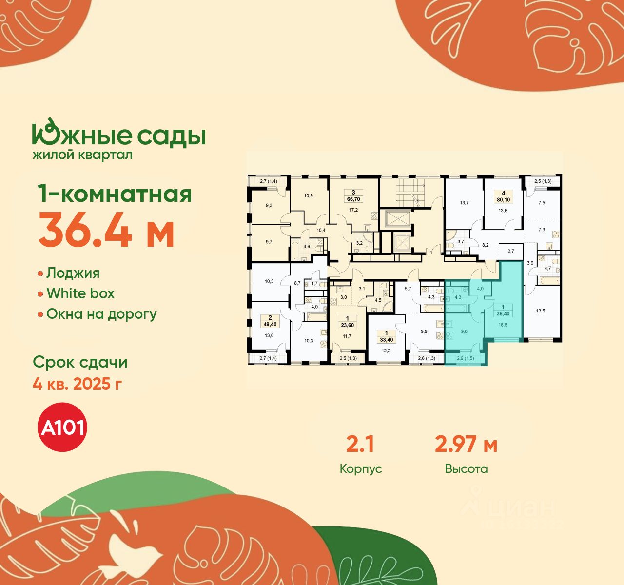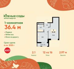 Продается однокомнатная квартира 282 в новостройке ЖК "Южные Сады" по адресу Москва, ЮЗАО, Южное Бутово, Жилой комплекс "Южные Сады", корп. 2.1. Общая площадь квартиры - 36.40 кв. м., этаж 12 из 16, секция 3. Тип проекта, по которому построен дом - монолит, компания-застройщик - ООО "А101". Стоимость квартиры - 16662828 Р. Срок сдачи - 4 квартал 2025.