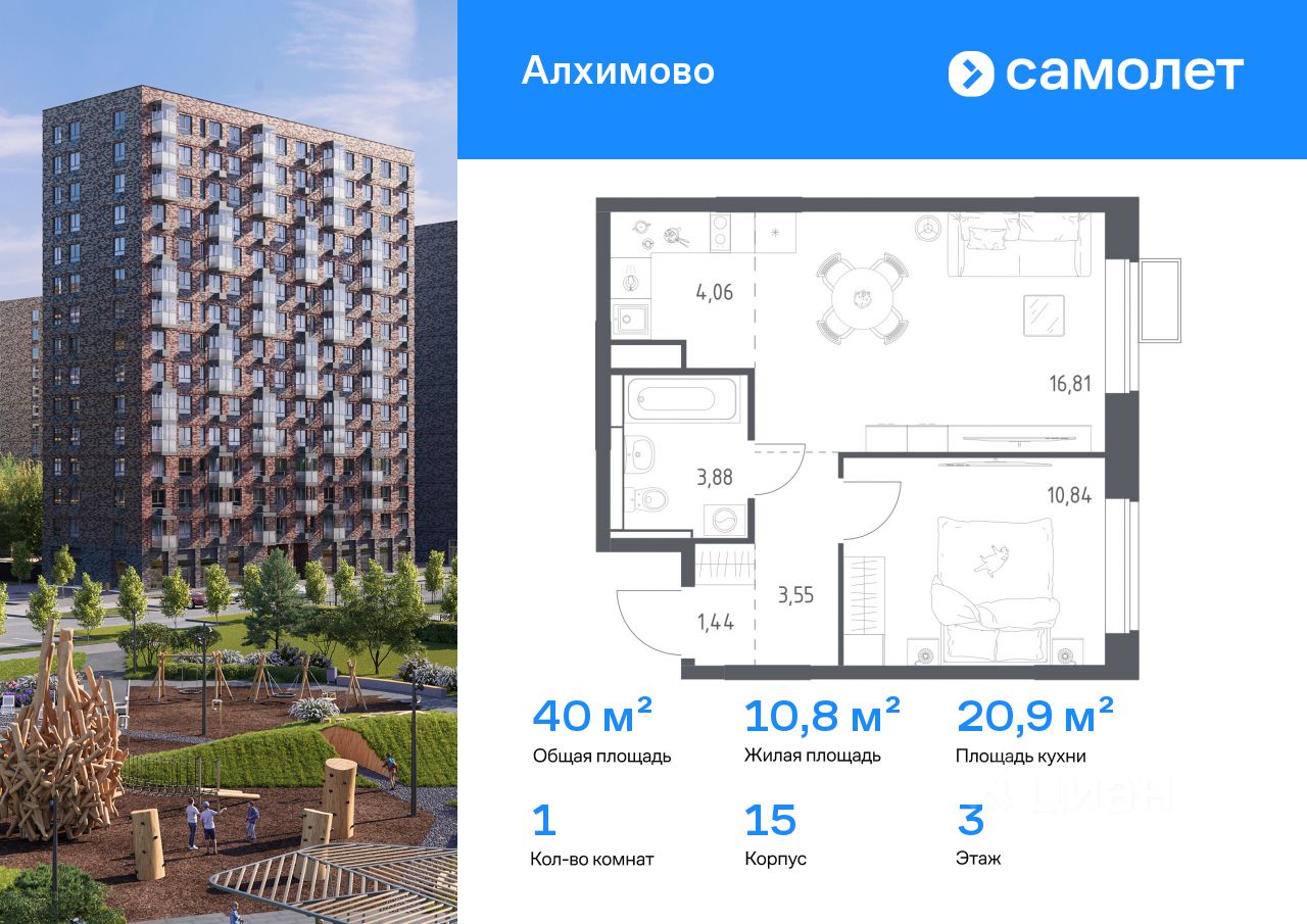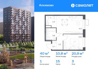 Строим кварталы для жизни с заботой о будущем. Предлагается 1-комнатная квартира комфорт-класса 40 кв.м в корпусе 15 на 3 этаже, в ЖК "Алхимово"