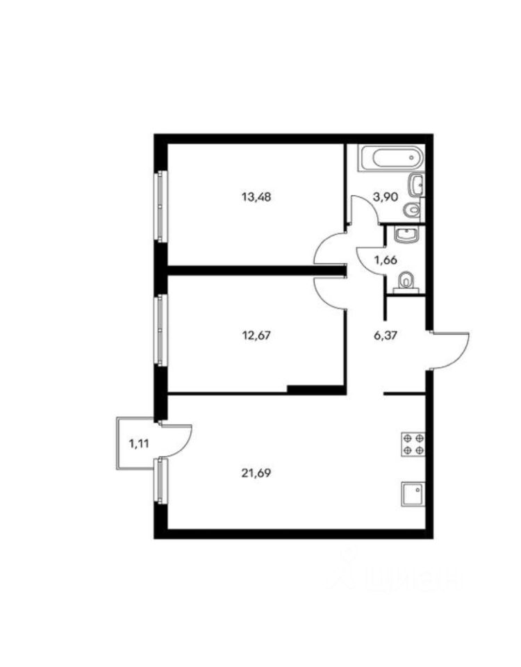 Вас порадует продуманный до мелочей дизайнерский ремонт, который придаст вашему новому жилью особый шарм и комфорт. Жилая площадь составляет 26.1 кв. м., а кухня занимает целых 21.7 кв. м. идеальное пространство для семейных ужинов и встреч с друзьями.