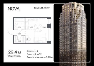 Строим кварталы для жизни с заботой о будущем. Предлагается квартира студия премиум-класса 29,39 кв.м в корпусе 1 на 2 этаже, в ЖК "NOVA"