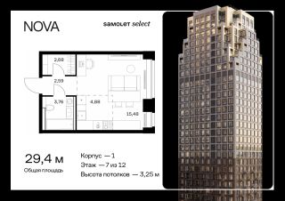 Строим кварталы для жизни с заботой о будущем. Предлагается квартира студия премиум-класса 29,39 кв.м в корпусе 1 на 7 этаже, в ЖК "NOVA"