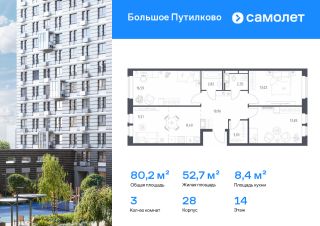 Строим кварталы для жизни с заботой о будущем. Предлагается 3-комнатная квартира комфорт-класса 80,21 кв.м в корпусе 28 на 14 этаже, в ЖК "Большое Путилково"