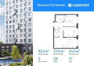 Строим кварталы для жизни с заботой о будущем. Предлагается 2-комнатная квартира комфорт-класса 51,31 кв.м в корпусе 28 на 17 этаже, в ЖК "Большое Путилково"