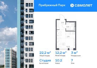 Строим кварталы для жизни с заботой о будущем. Предлагается квартира студия комфорт-класса 22,18 кв.м в корпусе 10.2 на 7 этаже, в ЖК "Прибрежный Парк"