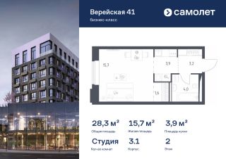 Строим кварталы для жизни с заботой о будущем. Предлагается квартира студия бизнес-класса 28,3 кв.м в корпусе 3.1 на 2 этаже, в "Верейская 41"