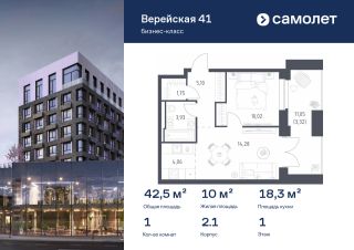 Строим кварталы для жизни с заботой о будущем. Предлагается 1-комнатная квартира бизнес-класса 42,46 кв.м в корпусе 2.1 на 1 этаже, в "Верейская 41"