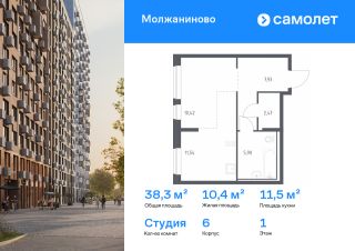 Строим кварталы для жизни с заботой о будущем. Предлагается квартира студия комфорт-класса 38,26 кв.м в корпусе 6 на 1 этаже, в ЖК "Молжаниново"