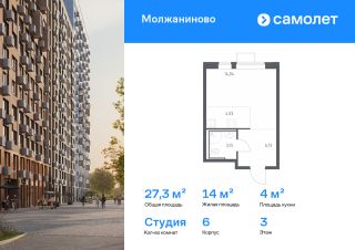 Строим кварталы для жизни с заботой о будущем. Предлагается квартира студия комфорт-класса 27,33 кв.м в корпусе 6 на 3 этаже, в ЖК "Молжаниново"