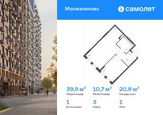 Строим кварталы для жизни с заботой о будущем. Предлагается 1-комнатная квартира комфорт-класса 39,9 кв.м в корпусе 3 на 1 этаже, в ЖК "Молжаниново"