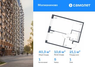 Строим кварталы для жизни с заботой о будущем. Предлагается 1-комнатная квартира комфорт-класса 40,3 кв.м в корпусе 5 на 1 этаже, в ЖК "Молжаниново"