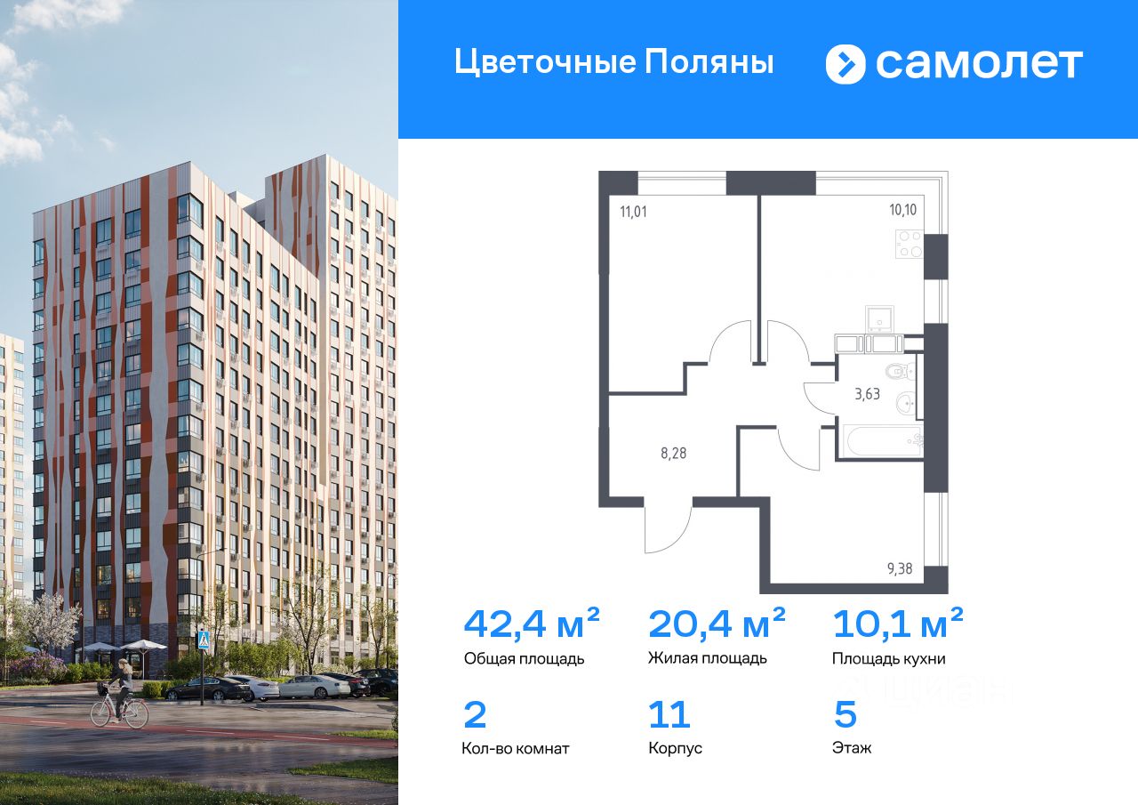 Строим кварталы для жизни с заботой о будущем. Предлагается 2-комнатная квартира комфорт-класса 42,4 кв.м в корпусе 11 на 5 этаже, в ЖК "Цветочные Поляны"