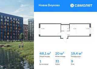 Строим кварталы для жизни с заботой о будущем. Предлагается 1-комнатная квартира комфорт-класса 48,08 кв.м в корпусе 31 на 9 этаже, в ЖК "Новое Внуково"