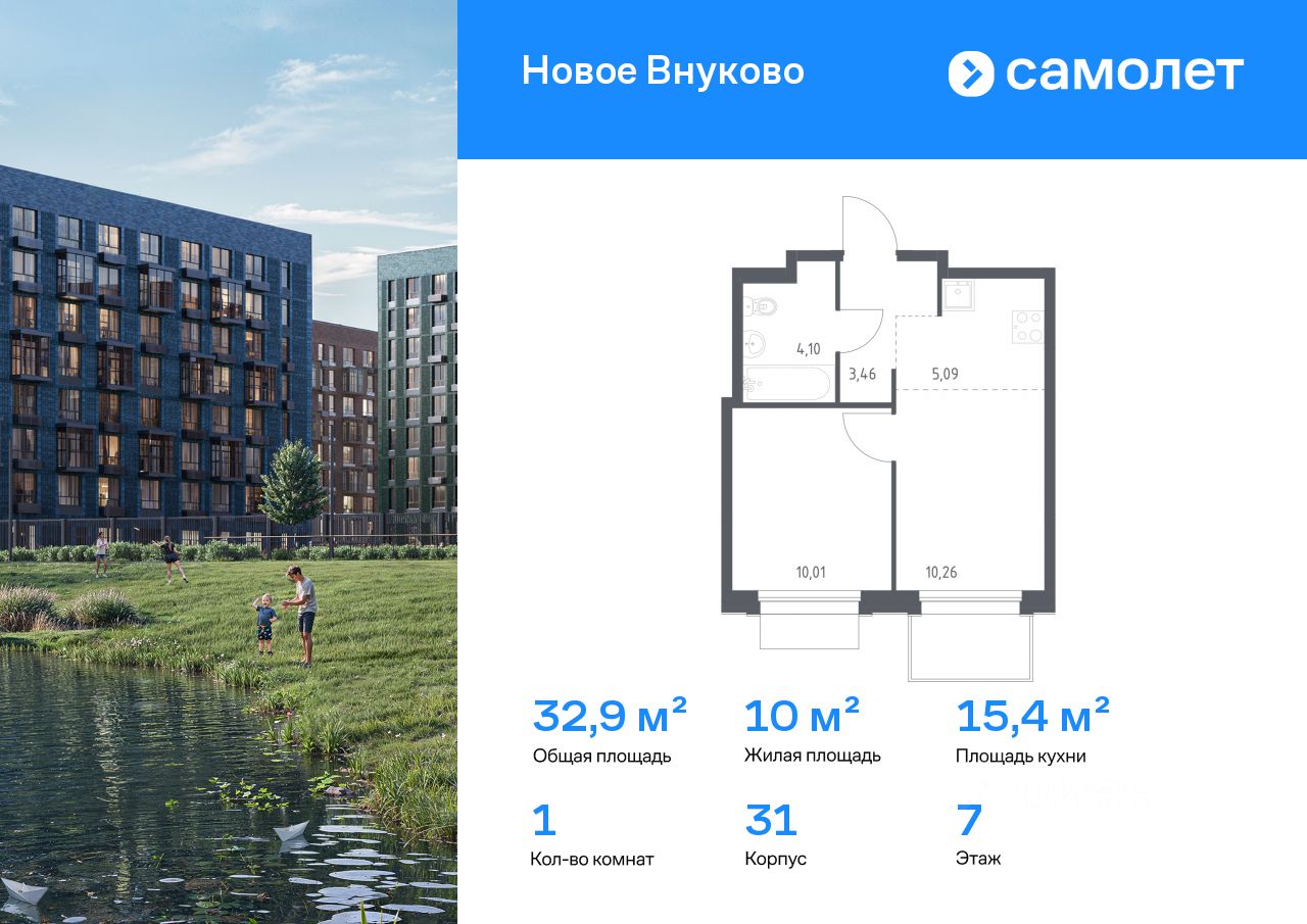 Строим кварталы для жизни с заботой о будущем. Предлагается 1-комнатная квартира комфорт-класса 32,92 кв.м в корпусе 31 на 7 этаже, в ЖК "Новое Внуково"
