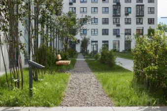 Дворы-парки закрыты от машин и посторонних. На территории — прогулочный маршрут вдоль реки Незнайка и набережная с шезлонгами и качелями для отдыха. Также здесь появится плейхаб "Незнайка на Луне", площадь для мероприятий с сухим фонтаном, летним кинотеатром и кафе.