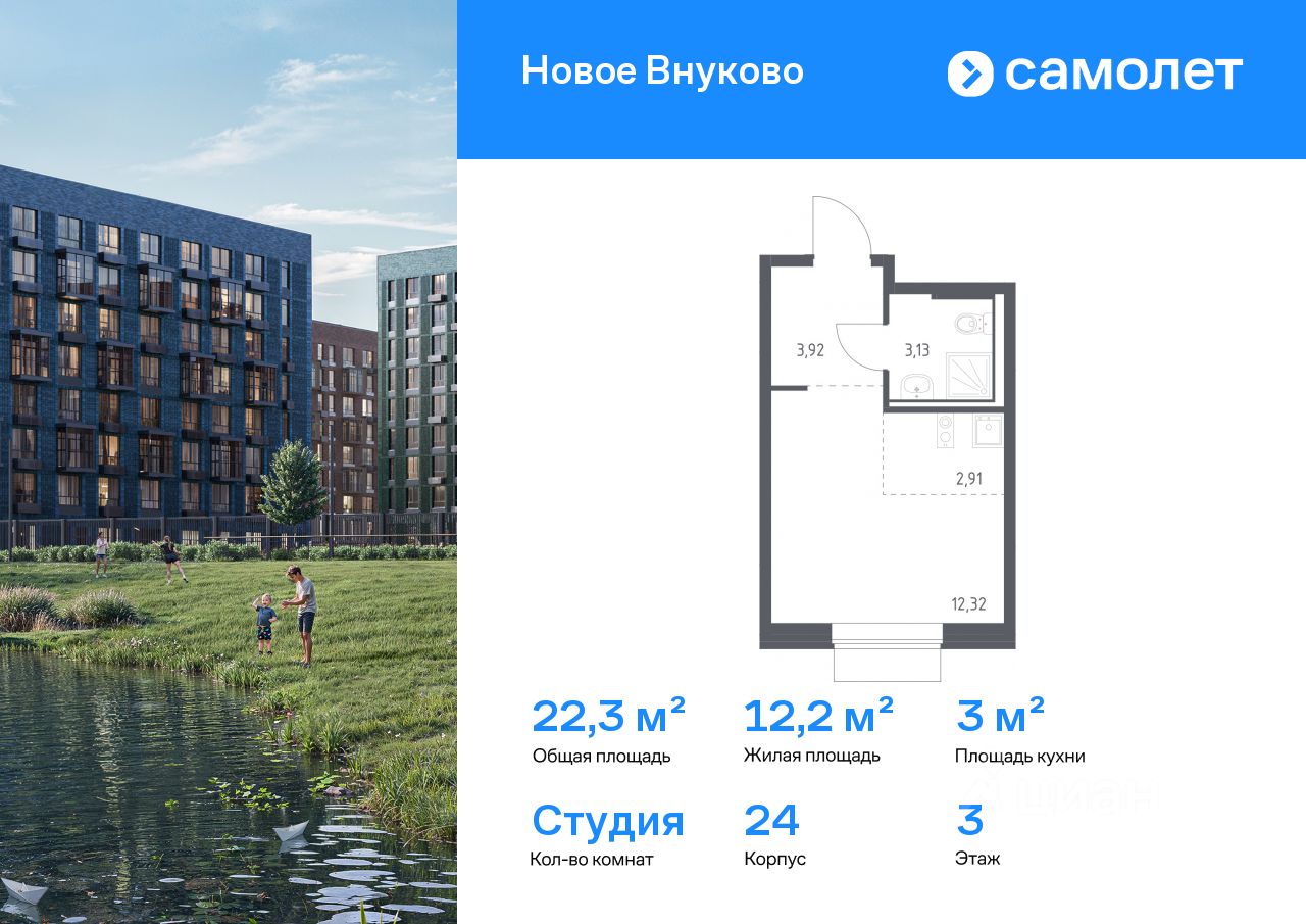 Строим кварталы для жизни с заботой о будущем. Предлагается квартира студия комфорт-класса 22,28 кв.м в корпусе 24 на 3 этаже, в ЖК "Новое Внуково"