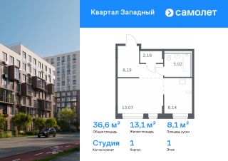 Строим кварталы для жизни с заботой о будущем. Предлагается квартира студия комфорт-класса 36,58 кв.м в корпусе 1 на 1 этаже, в ЖК "Квартал Западный"