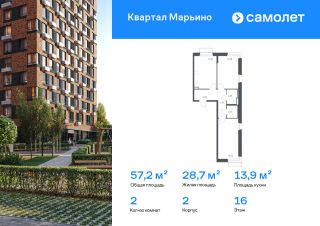 Строим кварталы для жизни с заботой о будущем. Предлагается 2-комнатная квартира комфорт-класса 57,16 кв.м в корпусе 2 на 16 этаже, в ЖК "Квартал Марьино"