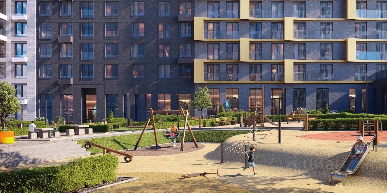 В закрытых дворах-парках предусмотрены игровые площадки, лужайки для пикников и йоги. Пространства для спокойного отдыха будут огорожены живыми изгородями.