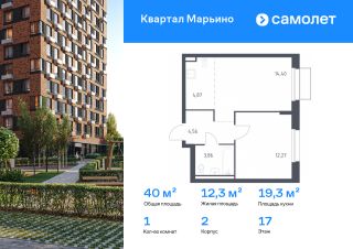 Строим кварталы для жизни с заботой о будущем. Предлагается 1-комнатная квартира комфорт-класса 39,96 кв.м в корпусе 2 на 17 этаже, в ЖК "Квартал Марьино"