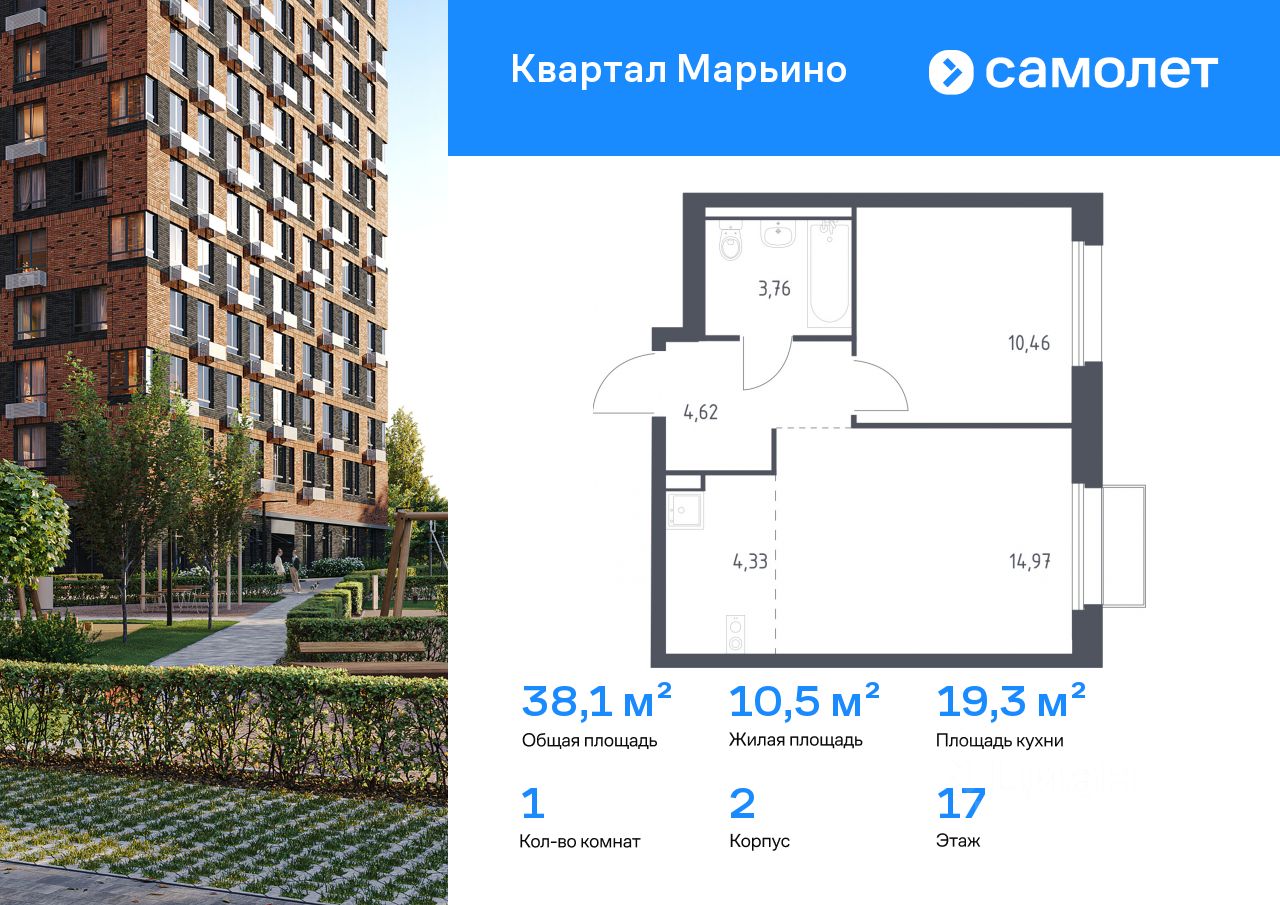 Строим кварталы для жизни с заботой о будущем. Предлагается 1-комнатная квартира комфорт-класса 38,14 кв.м в корпусе 2 на 17 этаже, в ЖК "Квартал Марьино"