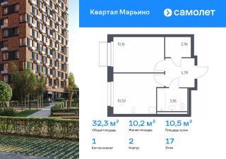 Строим кварталы для жизни с заботой о будущем. Предлагается 1-комнатная квартира комфорт-класса 32,26 кв.м в корпусе 2 на 17 этаже, в ЖК "Квартал Марьино"
