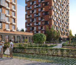 В закрытых дворах-парках предусмотрены игровые площадки, лужайки для пикников и йоги. Пространства для спокойного отдыха будут огорожены живыми изгородями.