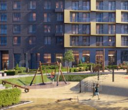В закрытых дворах-парках предусмотрены игровые площадки, лужайки для пикников и йоги. Пространства для спокойного отдыха будут огорожены живыми изгородями.