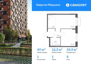 Строим кварталы для жизни с заботой о будущем. Предлагается 1-комнатная квартира комфорт-класса 39,96 кв.м в корпусе 1 на 5 этаже, в ЖК "Квартал Марьино"