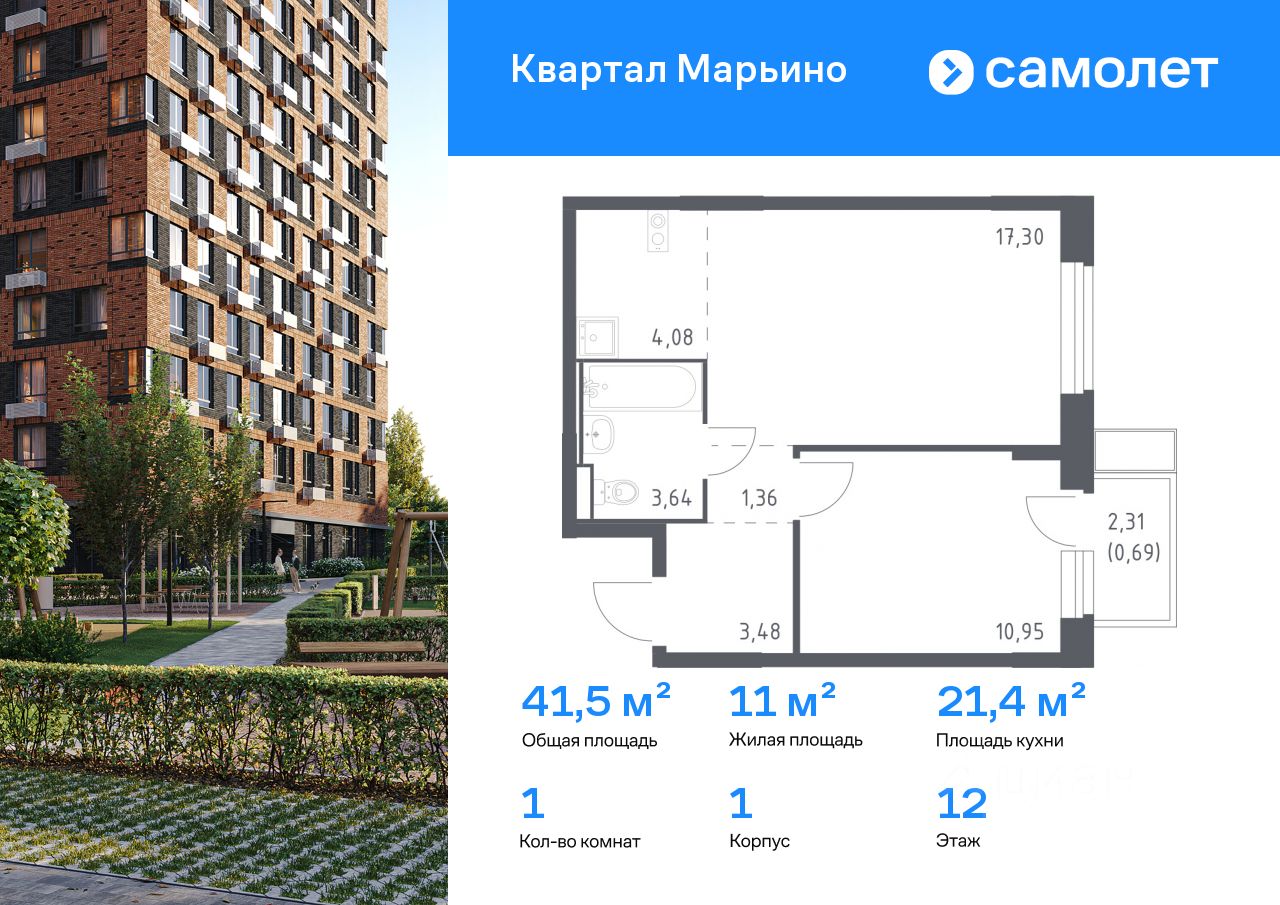 Строим кварталы для жизни с заботой о будущем. Предлагается 1-комнатная квартира комфорт-класса 41,5 кв.м в корпусе 1 на 12 этаже, в ЖК "Квартал Марьино"