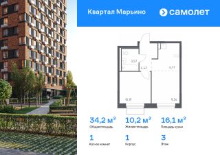 Строим кварталы для жизни с заботой о будущем. Предлагается 1-комнатная квартира комфорт-класса 34,23 кв.м в корпусе 1 на 3 этаже, в ЖК "Квартал Марьино"