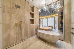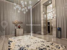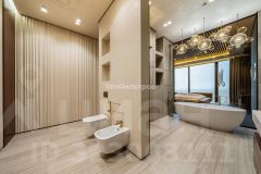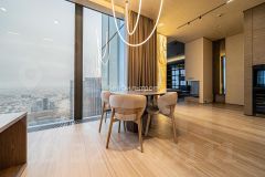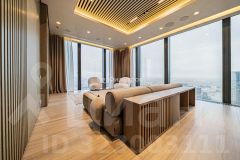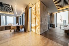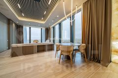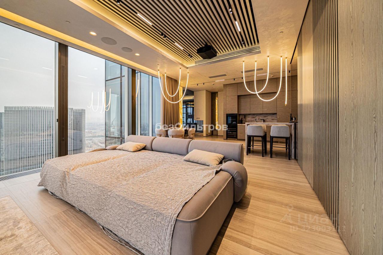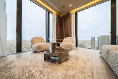 Апартамент с захватывающими видами на город с 63 этажа: Спальня, просторная кухня-гостиная, санузел с ванной чашей и душевой, гардеробные, постирочная...все выполнено в дизайнерской отделке из натуральных материалов высочайшего качества, с итальянской мебелью и техникой.