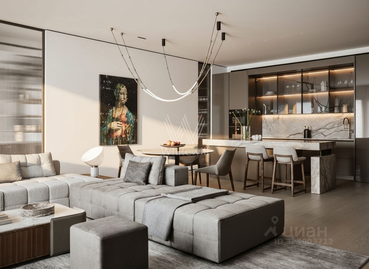 Просторная угловая квартира с тремя спальнями в комплексе делюкс-класса "Полянка 44" в тихом зеленом районе Москвы. Квартира площадью 168 м² расположена на шестом этаже. Выполнена дизайнерская отделка в современном стиле. Панорамные окна, ориентированные на две стороны света, наполняют пространство естественным светом.