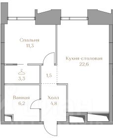 Представляем квартиру с 1 спальней площадью 49,7 м2 на 2 этаже.
