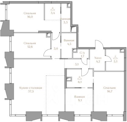 Представляем квартиру с 3 спальнями площадью 126,3 м2 на 2 этаже.