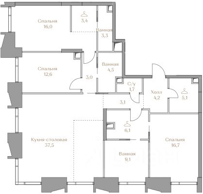 Представляем квартиру в клубном доме Highline 3 с 3 спальнями площадью 126,3 м² на 6 этаже.