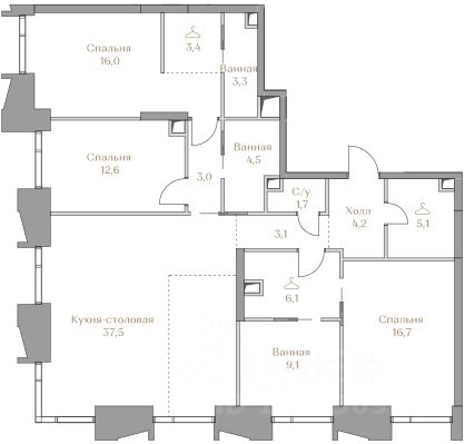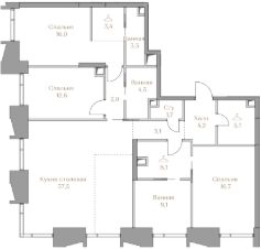 Представляем квартиру в клубном доме Хайлайн 3 с 3 спальнями площадью 126,3 м² на 6 этаже.