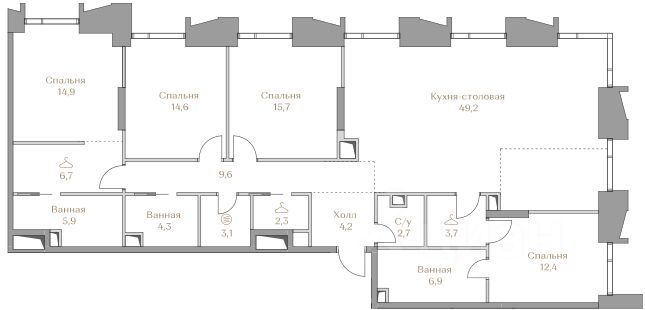 Представляем квартиру с 4 спальнями площадью 156,2 м² на 8 этаже.