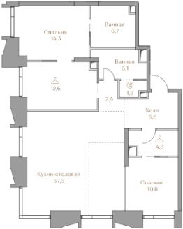 Представляем квартиру с 2 спальнями площадью 101,8 м² на 8 этаже.