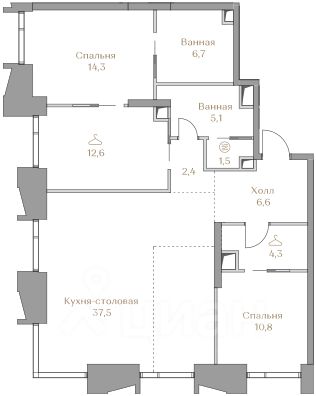 Представляем квартиру в клубном доме Хайлайн 3 с 2 спальнями площадью 101,8 м² на 8 этаже.