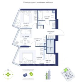 Продается видовая 2-х комнатная квартира с удачным планировочным решением площадью 56,1 м². на 16-м этаже 34-этажного дома в ЖК hideOUT с панорамными видами на Парк Победы, Москва-Сити.
